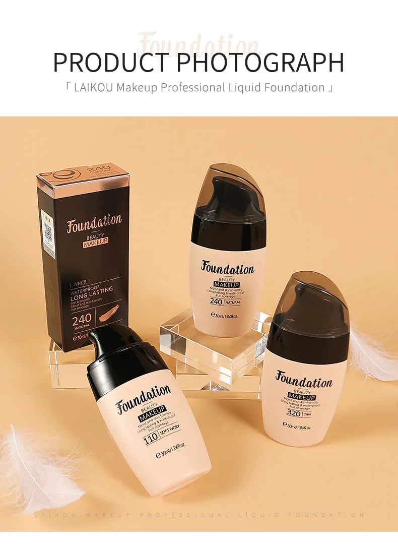 LAIKOU Liquid Foundation Cream Face Concealer Full Coverage Cover Primer Base Natural Waterproof Long Lasting Facial Cream